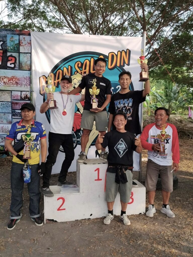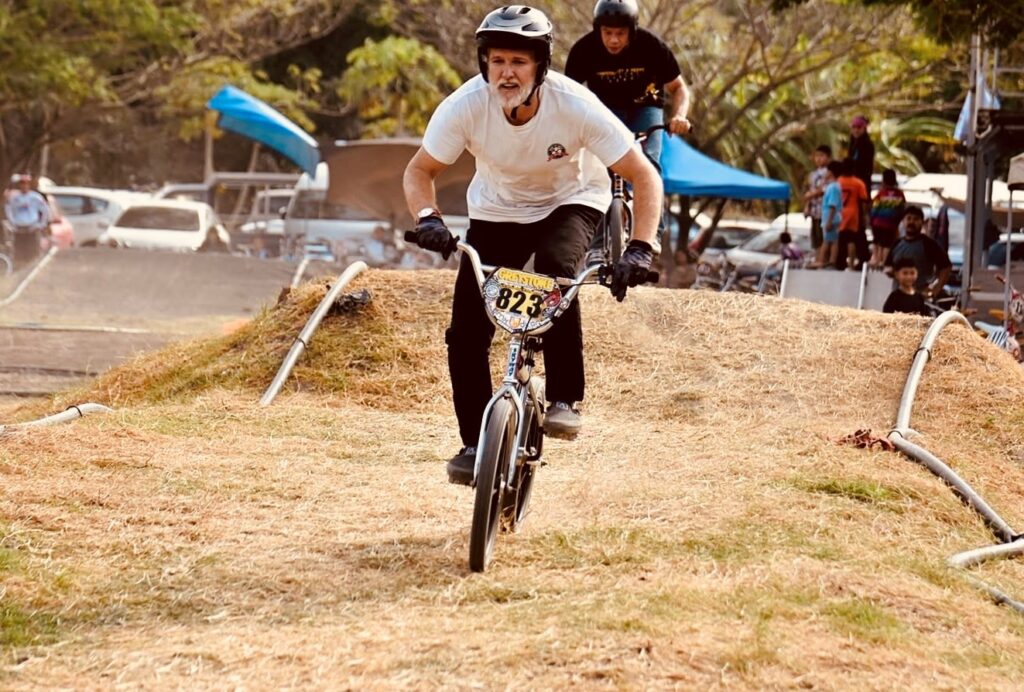 For once, Rod wasn’t in the top age category, as that went to 60+.  Lining up with the other ‘youngsters’ in the final, on a Skyway BMX from 1984, he got tangled in the gate as it dropped and was stone-cold last into the first loose turn. With luck more than skill, he eventually drew level with the leader but into the last turn that luck ran out and his feet blew off the pedals, meaning that he was literally left in the dust as he choked his way home in second place. The vintage scene is starting to grow and there are more races planned for 2026 and so if you fancy some low-key, simple racing, get in touch with Rod on rofo@patana.ac.th or follow him on www.facebook.com/pedalsreadygo