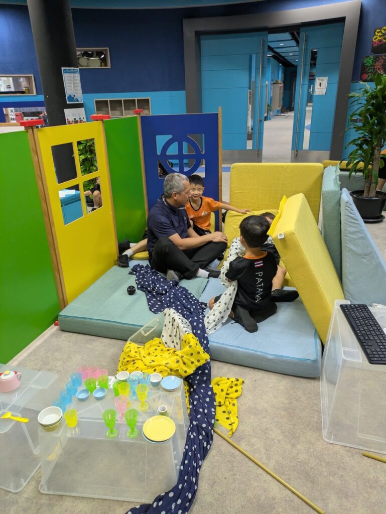 The children slowed down and began to work together. They negotiated where to stand or sit, waited while others adjusted their grip, and steadied materials for one another. This time, the structure held.