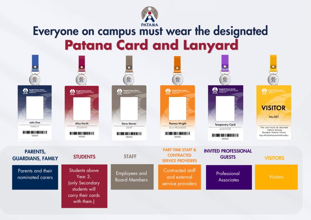 A reminder that all students, parents, and staff are required to wear their designated ID cards and lanyards at all times while on campus.