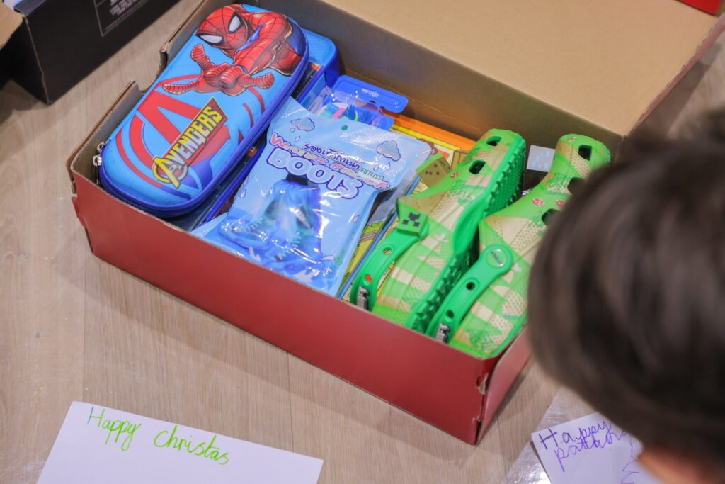 From mid-November, the shared area filled with excitement as students brought in their shoeboxes. Each box contained toiletries, stationery, a small toy and a personal note; simple but thoughtful gifts chosen with care. As the Christmas tree went up, the growing collection beneath it became a cheerful reminder of the kindness within our community.