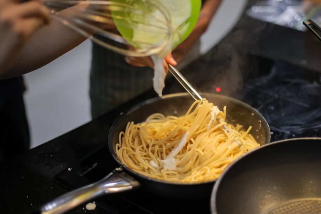 That knowledge was then taken out of the lab and into the kitchen. Guided by the Eatwell Guide from the UK Food Standards Agency, students studied how different food groups contribute to a balanced diet and the proportions needed to support good health. Working in groups, they planned meals that reflected this guidance, carefully considering carbohydrates, protein, vegetables and healthy oils.
