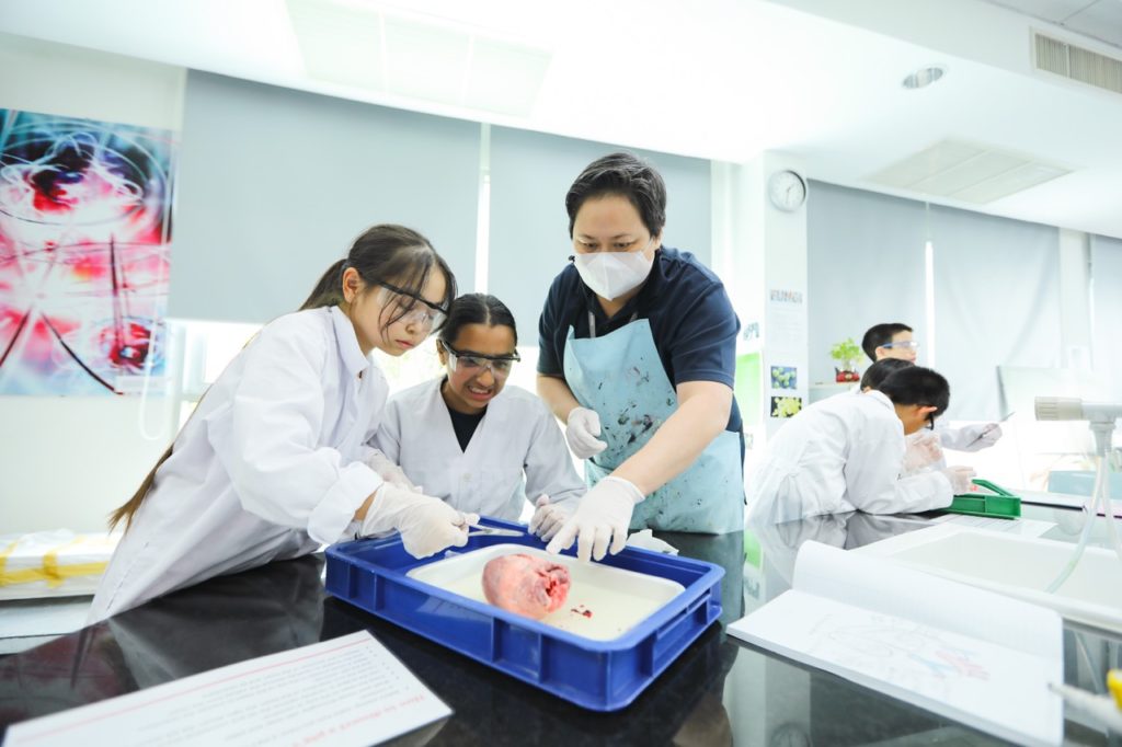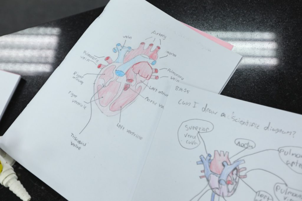 This was a powerful way of consolidating knowledge, enabling students to identify the parts of the heart, understand how blood flows through it, and discuss how the structure supports its vital function in the body. The students were engaged throughout the activity, asking thoughtful questions and making links to their prior learning about oxygen, nutrients and the transport of blood. For many, this was their first time encountering such a practical investigation, which sparked curiosity and deepened their understanding of how science is applied in real contexts.
