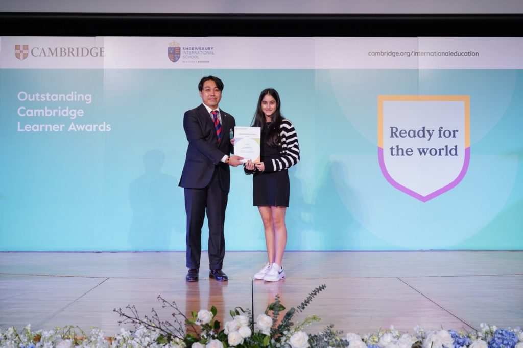Above all, I have many people to extend my sincere gratitude to: those at Cambridge Assessment International Education, my family, friends and my teacher, Mr Lauffer. Without their unwavering support, I would not have been able to earn this award, which will inspire me in my future, preparing me for forthcoming challenges. Thank you all for being part of this extraordinary journey.”