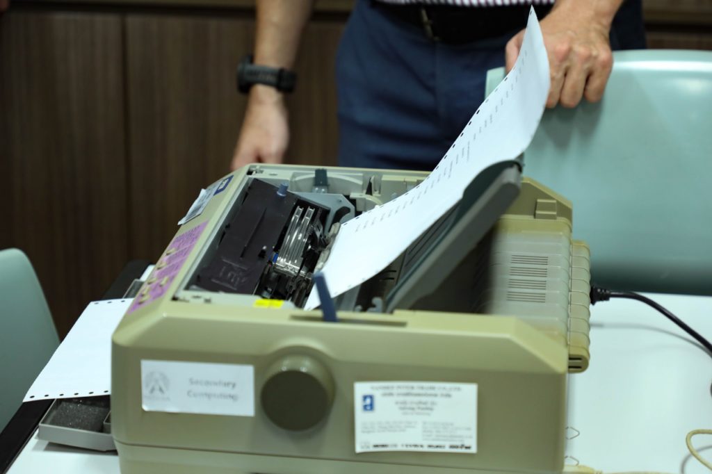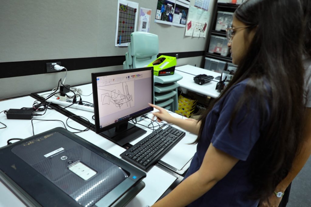 Among the devices explored was the dot matrix printer, an early example of impact printing technology that is still widely used today in factories and retail. Students also worked with a flatbed scanner, learning how it captures high-resolution images from photographs and documents, transforming them into digital files. Some less-commonly used input devices were explored too. The trackball, which is an alternative to the conventional mouse, provided a different method of controlling a pointer and interacting with software. The barcode scanner demonstrated the transfer of data into a computer, a technology pivotal in retail and inventory management. Lastly, the VR headset was the student’s favourite, offering a glimpse into the immersive possibilities of virtual reality technology and gaming.