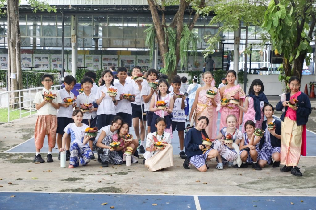 Primary School students marked Loy Krathong with a gentle and heartfelt celebration. The day was observed with quiet reverence, as students crafted their own krathongs using eco-friendly materials like banana blossoms and dok kae flowers, while our youngest learners enjoyed traditional Thai games such as ma-gaan-gluay and mon-son-pa. The thoughtfully decorated kratongs were floated on the school’s Reflecting Pool, in a symbolic gesture of respect to the water goddess, Phra Mae Khongka and to offer wishes for the year ahead.
