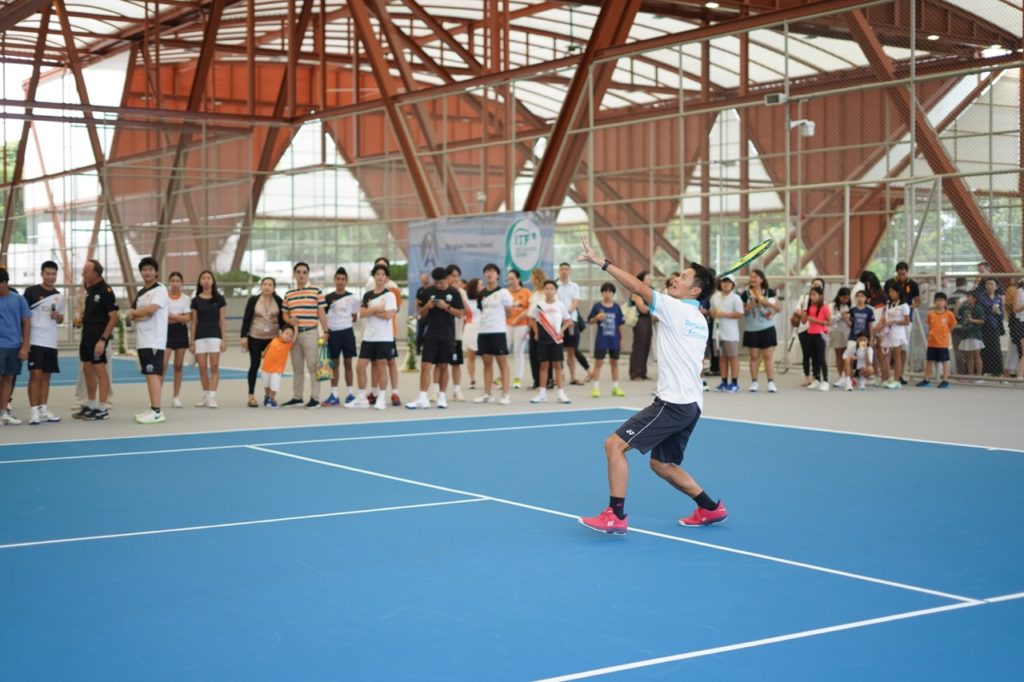 Foundation Board Chair Dr Tarisa Wattanagase and Governor Thapanee cut the ribbon along with other members of the community and opened the Tennis Courts for play. The inauguration event concluded with an exhibition match with Thai tennis professionals Danai Udomchoke and Jan Viratprasert on court with our Varsity Tennis Academy students. Mr. Sammons also tried his hand at playing Tennis with some of the students and they did give him some fair advice in case he decided to play again!