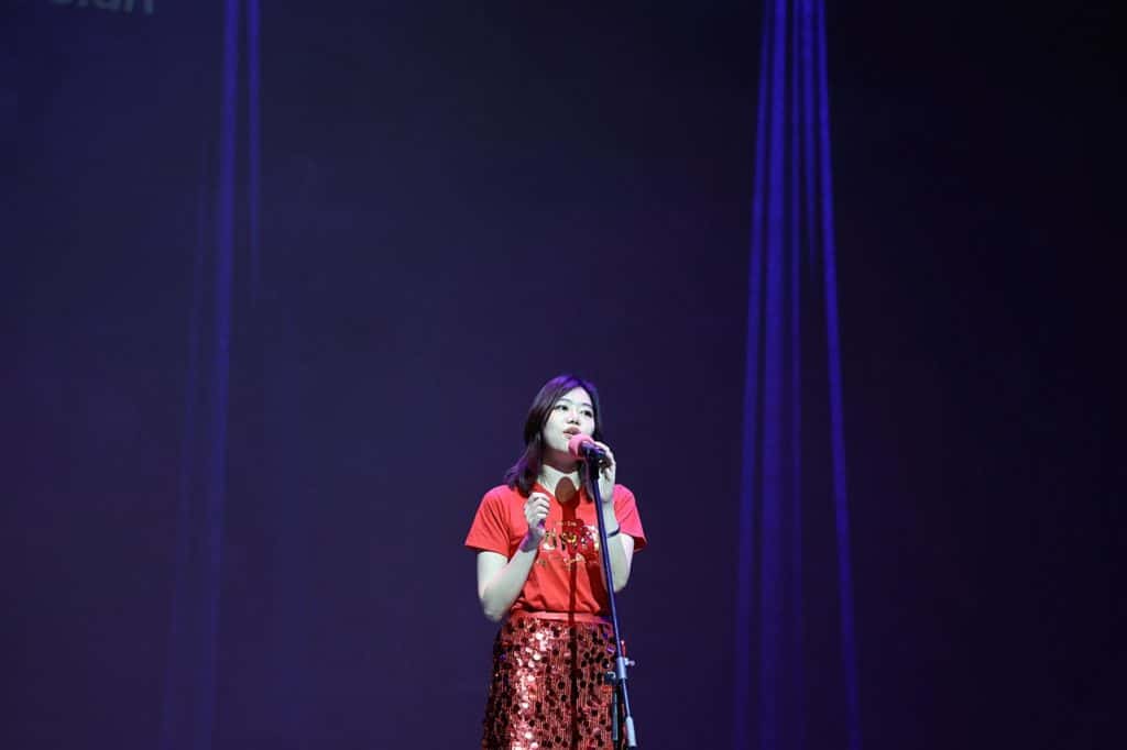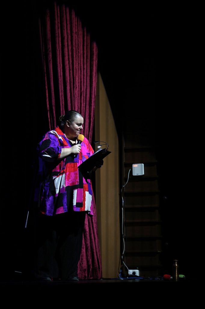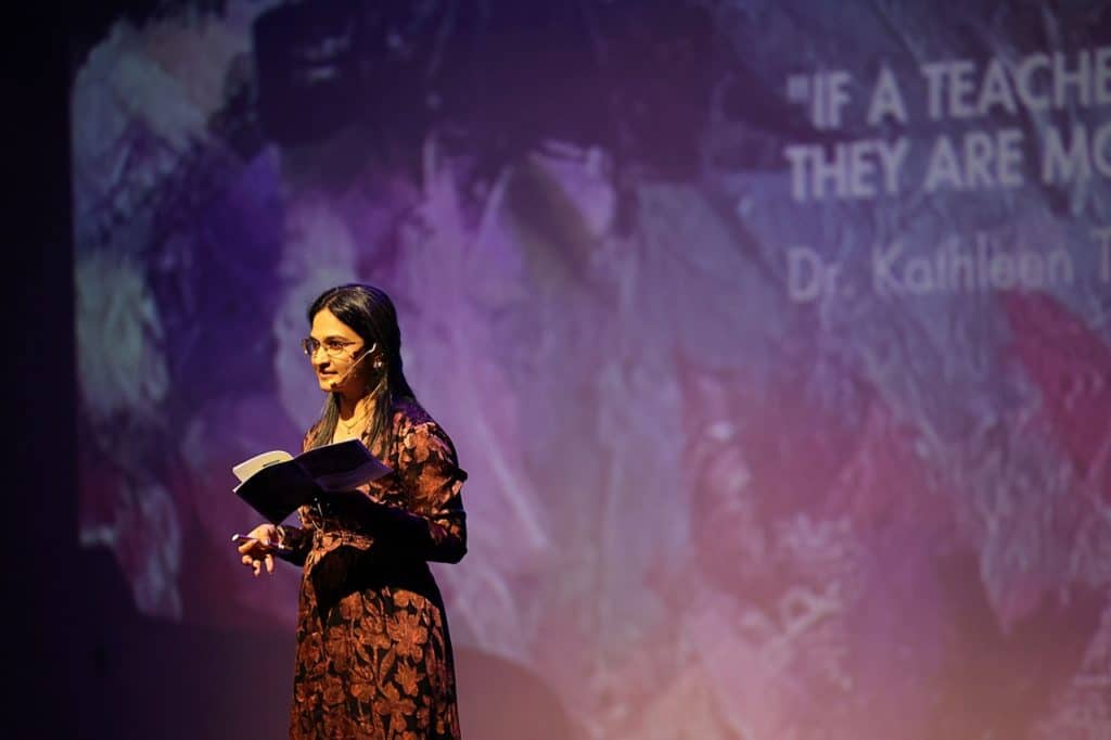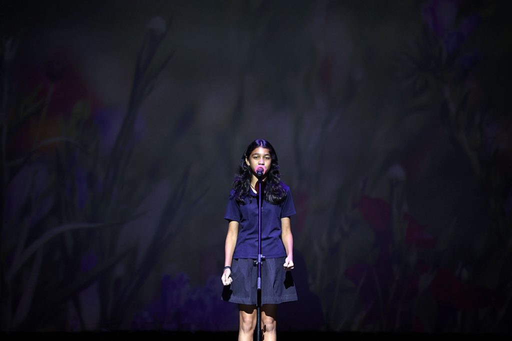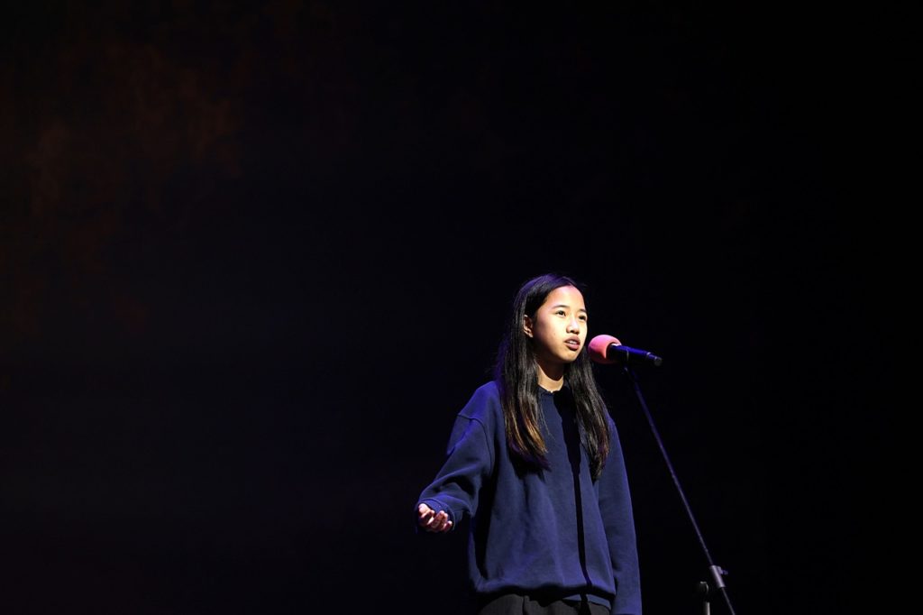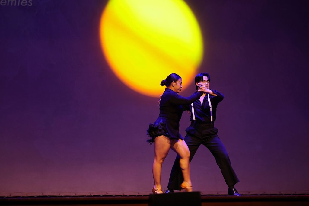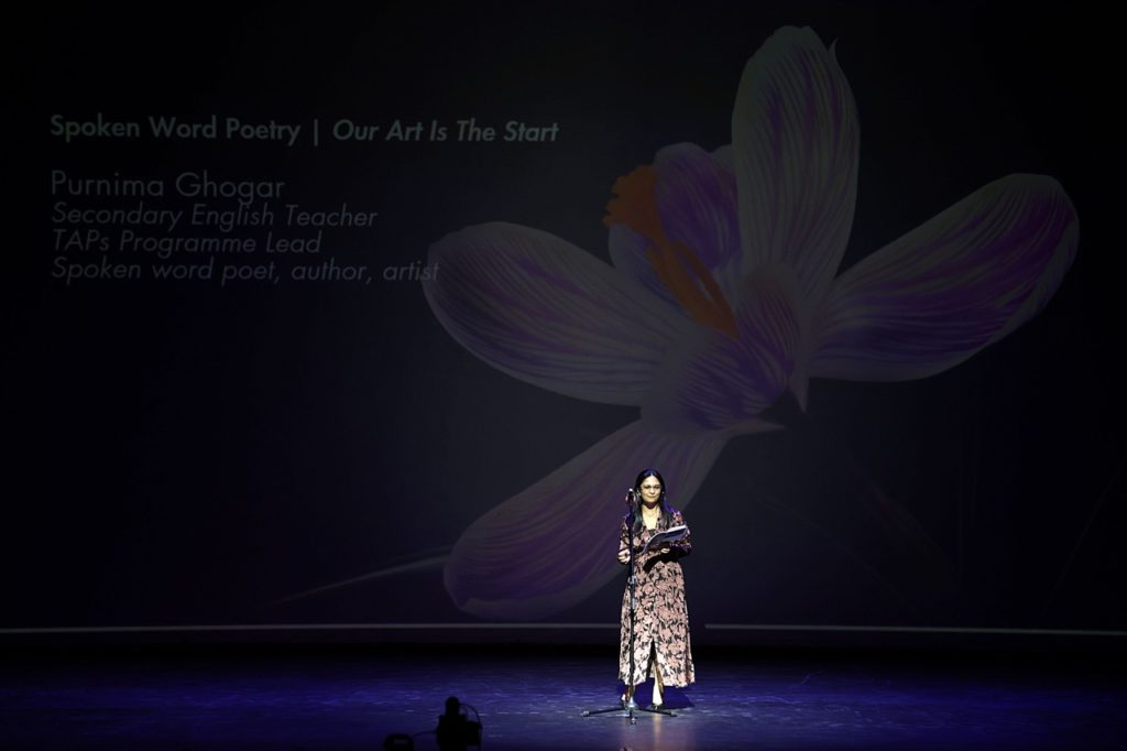 The evening opened with remarks from TAPs Project Lead, Exhibition Curator and Researcher, Purnima Ghogar. The Theatre then came alive with an exciting lineup of live performances. Mark Lanzuela (Digital Media & Alumni Specialist) and Krit Kosoltrakul (Secondary Music Subject Specialist) enchanted the audience with a beautiful musical duet, while the soulful vocals of Alissa Sariwongchan (Teaching Assistant, Nursery), followed by a fun song from Charinthon (Meaw) Yensuang (Receptionist) and Khun Amm (Senior Nurse), captivated everyone. Rick Kirtland (Assistant Principal Inclusion & Welfare, Primary) delighted us with a reading from his newly published children’s book, while Sharon Godfrey, Katie Meadows (Secondary Drama Teacher) supported by their students brought thought-provoking monologues and performance art to the stage. The energy soared with a vibrant Latin dance by Suveenat (Nanzie) Noinual (Assistant Head Dance Coach) and the showcase culminated with powerful messages on creativity and activism through spoken word poetry by Purnima Ghogar (Secondary English Teacher) followed by her Spoken Word Poetry Showcase ECA students, Aarushi from Year 8 and Nia from Year 9.