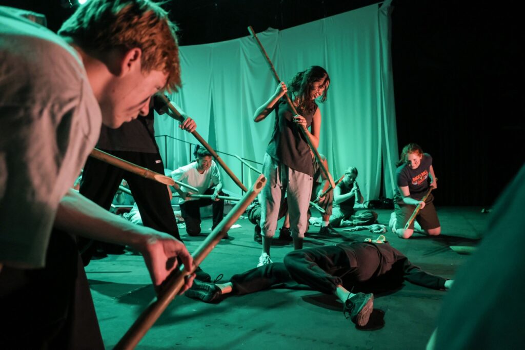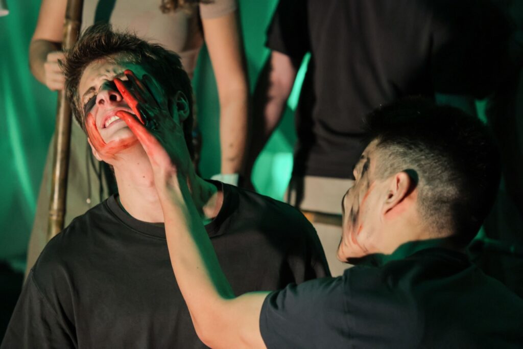 Auditions launched at the start of Term 1, bringing together students from Years 10 to 13. What followed was a challenging casting process and weeks of intense rehearsals, where the story slowly came alive. The result was a performance that captured the raw energy and haunting themes of Lord of the Flies with striking authenticity.