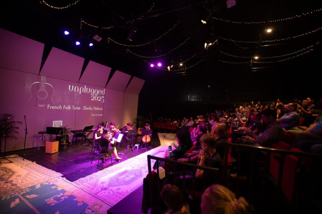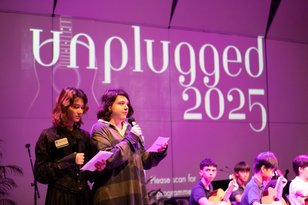 The Black Box Theatre was buzzing for Unplugged ’25, as Secondary students transformed the stage into a sonic tapestry of genres, emotions and surprises. With the lights dimmed and anticipation high, students from Year 7 to Year 13 took the mic—and our breath away.