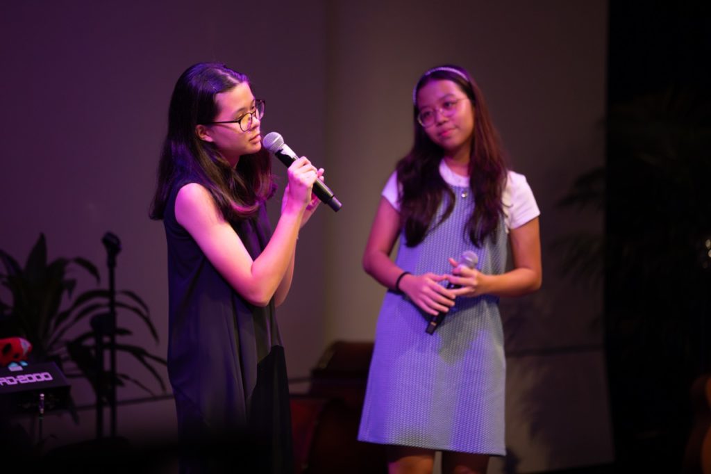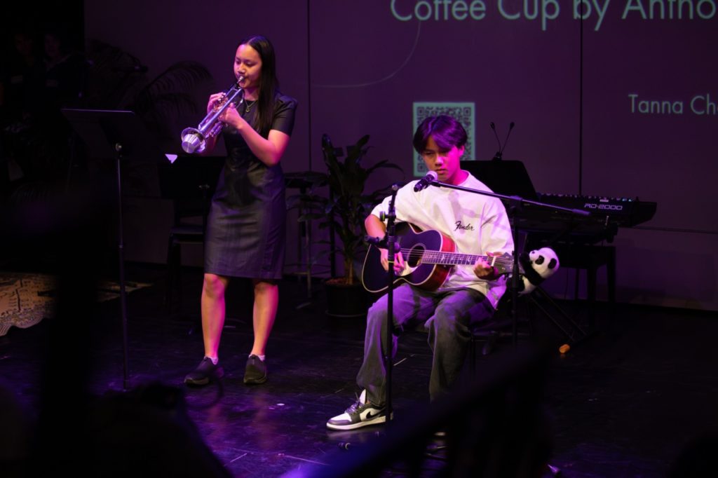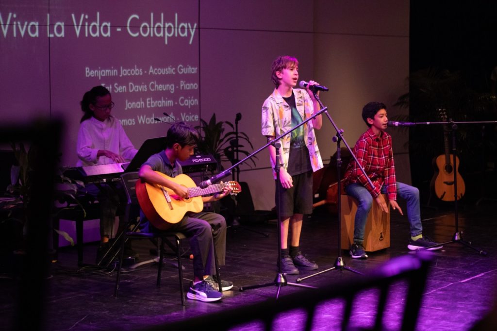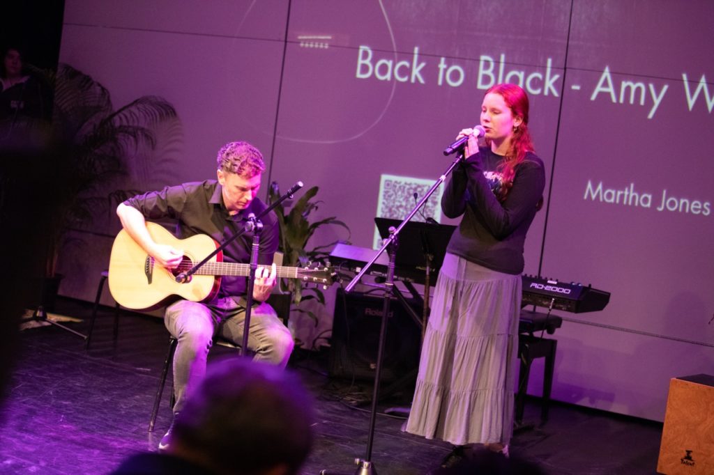 Some of the crowd favourites included Daniel and Basile’s heartfelt Your Song by Elton John and the hauntingly beautiful Double Take by Ying Ying and Mingkun. Back to Black came alive with smoky vocals from Martha and Luke, while Corner of the Sky saw Eric channel Broadway charm with flair.