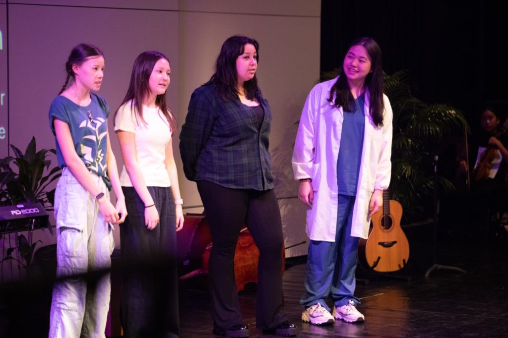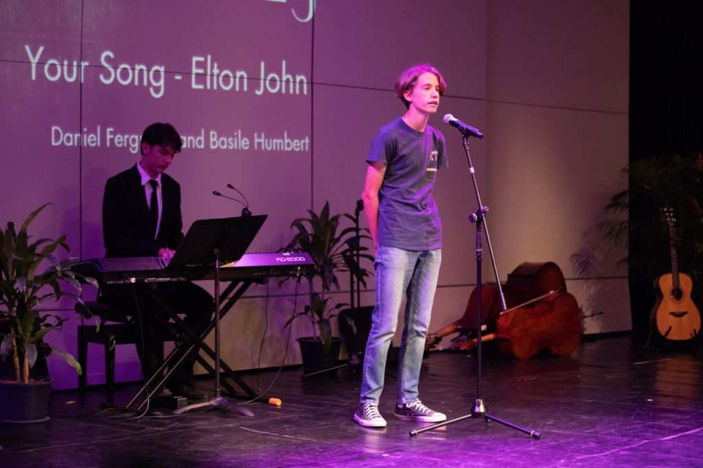 The stage pulsed with life during Lonely Day by System of a Down, delivered with intensity by Sara and friends, and the room soared with Coldplay’s Viva La Vida as performed by Thomas, Benjamin, Dave and Jonah. The Senior Choir closed the evening with Still Haven’t Found What I’m Looking For and Can You Hear?, harmonies rising like a call to community and connection.