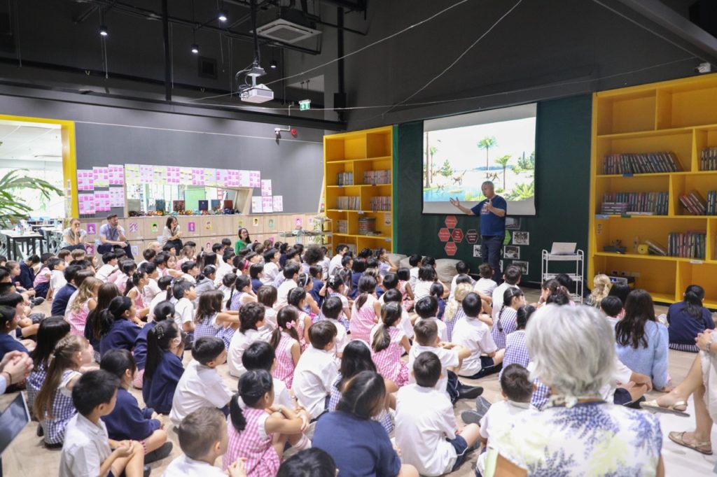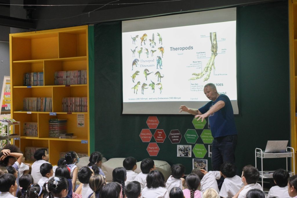 Mr John Burrell, our Secondary Science teacher, visited Primary School to deliver a fascinating assembly on dinosaurs in Thailand to the Year 4 students. He shared incredible adventure stories from his 25 years of traveling to fossil hotspots, bringing the past to life with his firsthand experiences. With a detailed map, he showed the students key locations where dinosaur remains have been discovered.