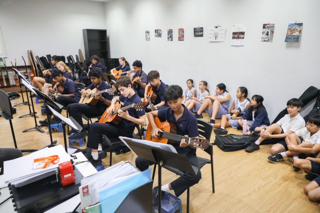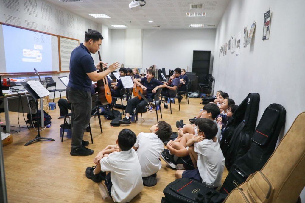 They were warmly welcomed with live performances from a variety of ensembles, including the Vocal, Thai, Guitar, Concert Band and String groups. The students listened, asked questions and imagined themselves as part of the ensembles next year. They showed great curiosity and enthusiasm.